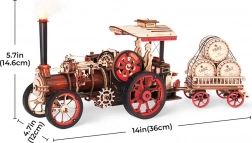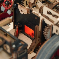 RoboTime, puzzle-ul 3D mecanic al motorului cu abur, îi va încânta pe toți iubitorii de tehnică, machete și seturi din lemn ingenios concepute. După asamblare obții un model funcțional cu cutie de viteze manuală în 3 trepte, roți din silicon și o remorcă cu suspensie, pivotantă la 120°. Iluminarea LED în focar și coș creează o impresie realistă de ardere și fum, astfel încât modelul nu doar arată, ci și „se comportă” ca un adevărat motor cu abur.