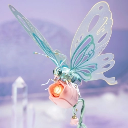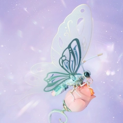 Scufundă-te în lumea creativității și a naturii cu acest superb puzzle mecanic 3D cu fluture. Acest fluture detaliat impresionează prin mișcările sale și efectul luminos discret. Fluturele are aripi bionice, care se mișcă realist, iar baza cu motiv de trandafir luminează cu o strălucire aurie.