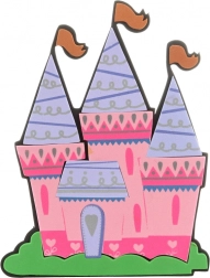 Decupajul colorat din spumă al unui castel cu trei turnulețe aduce o atmosferă magică în cameră.