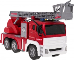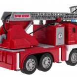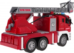 Această mașină de pompieri interactivă este companionul perfect de joc pentru copiii care iubesc jocurile pline de acțiune. Vehiculul este realizat din materiale de înaltă calitate și atrage atenția cu culorile sale vibrante. Datorită scării reglabile mobile, anvelopelor de cauciuc și funcției de pulverizare a apei, jocul este maxim realist și distractiv. Mașina este propulsată de un mecanism de frecare la puntea din față și este echipată cu efecte de lumină combinate cu semnale sonore care simulează o intervenție reală.