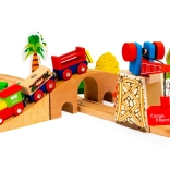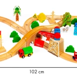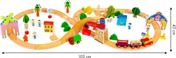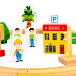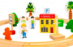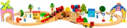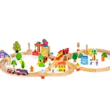 Acest set de trenuri din lemn de la marca Ecotoys este un complex complet de elemente de joc, conținând 74 piese precum vehicule, semne de circulație și clădiri, pe care copiii le pot asambla liber într-o aranjare atractivă. Este conceput având în vedere siguranța copiilor, din materiale de calitate. Datorită numeroaselor accesorii, copiii se pot juca ore în șir, dezvoltându-și îndemânarea, coordonarea și creativitatea.