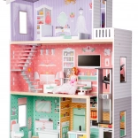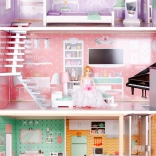 Căsuța oferă 3 niveluri și 4 camere mobilate diferit: bucătărie, baie, living și dormitor cu terasă. Accesul deschis susține jocul împreună și dezvoltarea imaginației.
