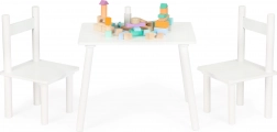 Creați-le copiilor un colțișor propriu pentru joacă și învățare. Setul din lemn alb ECOTOYS combină designul scandinav simplu cu o execuție durabilă: picioarele din pin masiv asigură stabilitate, iar blatul din MDF se întreține ușor curat. Setul include o masă și două scăunele confortabile, cu proporții armonizate.