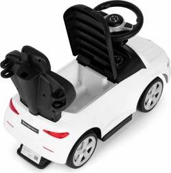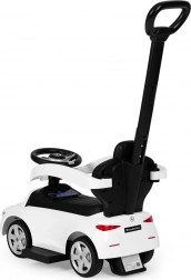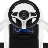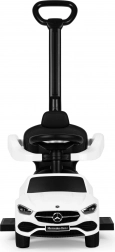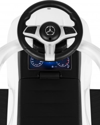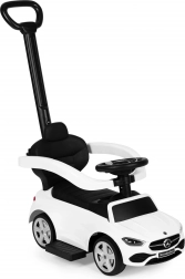 Trotinetă fără pedale stilată, cu licență MERCEDES C‑Class, pentru copii de la 12 luni, oferă o construcție sigură și stabilă, spătar confortabil cu mâner de ghidare, bare de siguranță și volan interactiv cu claxon și sunet de pornire. Include spațiu de depozitare sub scaun și element anti‑răsturnare. Sarcină maximă 25 kg.