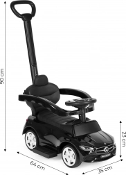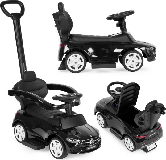Mașinuța de împins cu licență Mercedes oferă copiilor de la 12 luni o plimbare sigură și distractivă. Dispune de structură robustă, bare de siguranță, mâner de ghidare pentru părinți, spațiu de depozitare sub șezut și volan interactiv cu claxon și sunet de pornire a motorului. Datorită sistemului 3‑în‑1, mașinuța crește odată cu copilul și susține dezvoltarea motricității și mișcarea în siguranță afară.