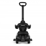 Sistemul 3‑în‑1 permite adaptarea mașinuței la vârsta și abilitățile copilului: cu protecții laterale și tijă de ghidare, doar cu tijă de ghidare sau ca mașinuță de împins independentă. Sub șezut se află o cutie practică pentru jucării și mărunțișuri, iar volanul interactiv (alimentare 2× AAA, nu sunt incluse) face plimbarea mai distractivă datorită claxonului și sunetului de pornire.