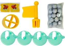 - 4 figurine pinguin, piese pentru ghețar (4 piste), platforme rotative, bulgări de zăpadă, steguleț, autocolante, accesorii