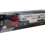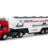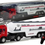 Prezentăm cisterna cu telecomandă, care oferă copiilor ocazia de a explora lumea vehiculelor de construcții în confortul jocurilor lor. Vehiculul dispune de roți de plastic, ce permit utilizarea pe diverse suprafețe. Cabina roșie cu o suprastructură albă, completată de detalii negre contrastante și autocolante caracteristice, oferă un aspect realist.