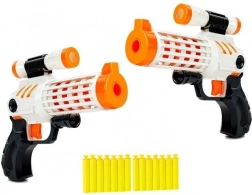 Setul conține două pistoale și gloanțe din spumă cu ventuze pentru distracție sigură. Copiii pot să se joace de-a micii războinici și să se bucure de ore întregi de distracție.