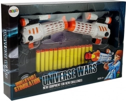 Setul complet în cutie cadou 'Universe Wars' conține 2 pistoale și gloanțe, și este un cadou grozav pentru toți micii eroi ai spațiului.