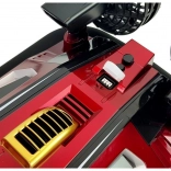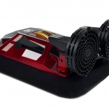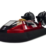 Se poate deplasa un vehicul pe apă fără elice sau pe uscat fără roți? Da, datorită celor două elice mari care împing aerul cu o forță atât de mare încât aeroglisorul se ridică – un principiu similar cu cel al unui motor cu reacție, cu diferența că gazul evacuat cu putere este aerul. Datorită suprafeței alunecoase, se poate deplasa pe suprafețe netede. Aeroglisorul telecomandat are o construcție specială care împiedică pătrunderea apei. Butonul de pornire este amplasat pe acoperișul ambarcațiunii. Aspectul său, forma aerodinamică a bărcii cu motor, atrage atenția. Viteza bărcii de curse ajunge până la 20 km/h. Emite pe frecvența de 2,4 GHz. Telecomanda este comodă, se potrivește perfect în mână și permite control înainte, înapoi și lateral.