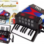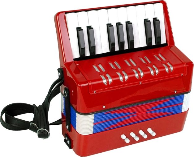 Descoperă bucuria muzicii cu acordeonul pentru copii, care arată ca un instrument real și sună surprinzător de bine. Susține motricitatea, auzul muzical și dragostea naturală pentru muzică. Datorită celor 17 clape și 8 butoane de bas, copiii pot învăța ușor primele melodii și ritmuri.