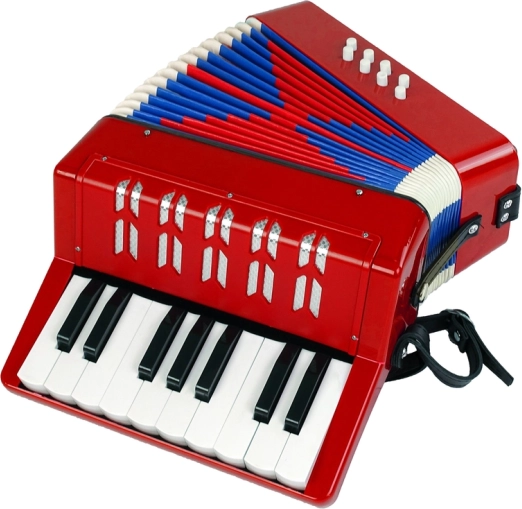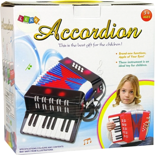 Arată ca un acordeon adevărat și, cu o utilizare corectă a burdufului, produce melodii plăcute – ideal pentru primii pași în muzică.