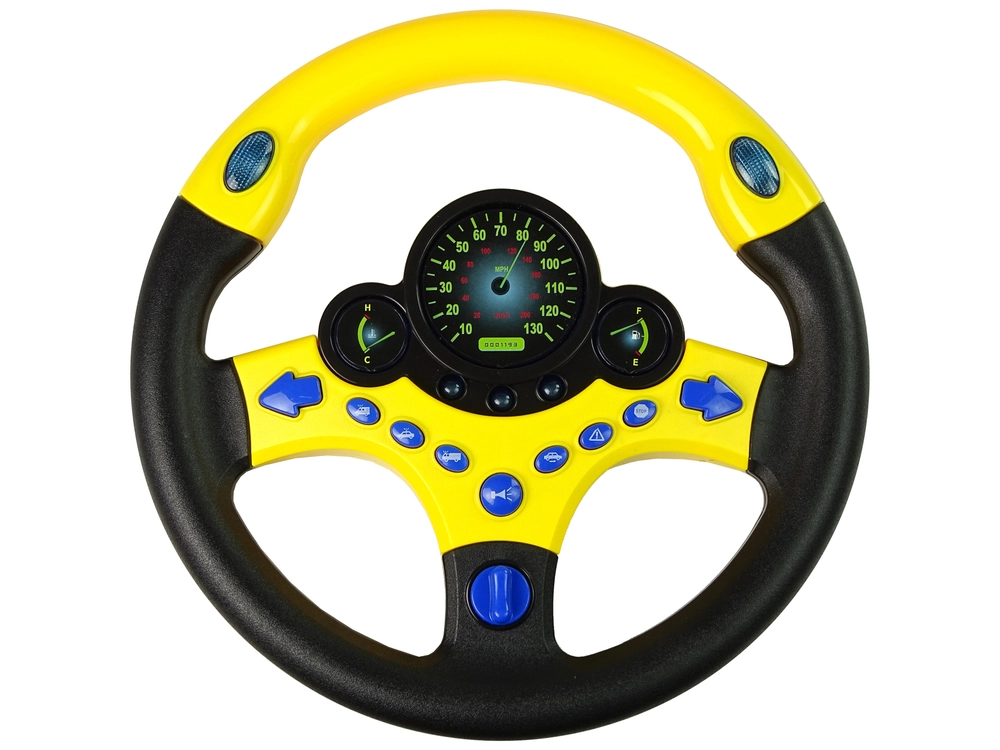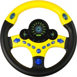 Volanul este în culorile galben și negru. Întregul volan are nouă butoane, inclusiv două semnalizări, claxon și semnale de urgență. Este suficient să rotești cheia de pornire și poți începe să te joci! Ceasurile de pe volan luminează în albastru. Datorită aspectului și LED-urilor, copilul tău va avea senzația că se află pe un drum real și își conduce propria mașină. Volanul se potrivește perfect în mâinile copilului tău. Este timpul ca micuțul să simuleze condusul.