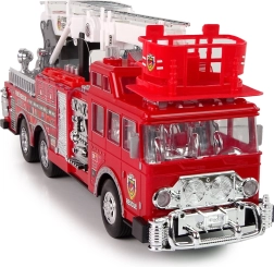 Acest model de mașină de pompieri realizat cu atenție la detalii oferă copiilor o experiență autentică de intervenție. Culoarea roșie cu elemente argintii, lumini și efecte sonore impresionează de la prima vedere. Vedeta principală este scara extensibilă și înclinabilă cu rotație la 360°, care permite atingerea unor înălțimi de până la 44 cm.