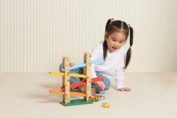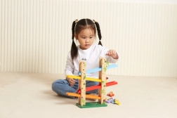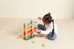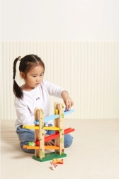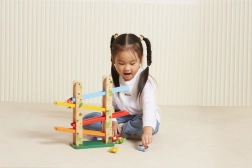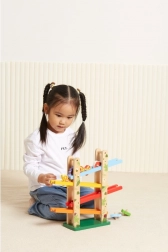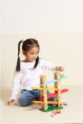 Pista de coborâre din lemn sprijină joaca interactivă și îmbunătățește coordonarea mișcărilor.