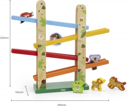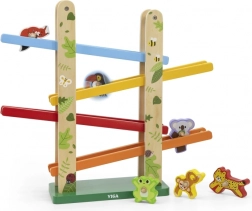 Pista de coborâre din lemn pentru animale Jungle Slider de la brandul VIGA este proiectată pentru a bucura și educa copiii. Datorită calității prelucrării și a componentelor colorate, această jucărie oferă experiențe de joc captivante. Animalele pot aluneca pe cele patru niveluri ale pistei, ceea ce dezvoltă coordonarea și motricitatea fină.