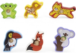 Pachetul include șase figurine de animale din lemn, care dezvoltă imaginația și abilitățile motorii.
