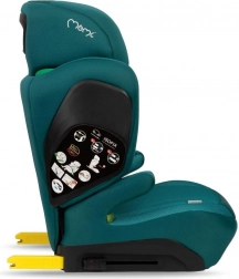 - Indicator vizibil pentru confirmarea fixării corecte între baza ISOFIX și scaunul auto, care reduce riscul unei montări incorecte