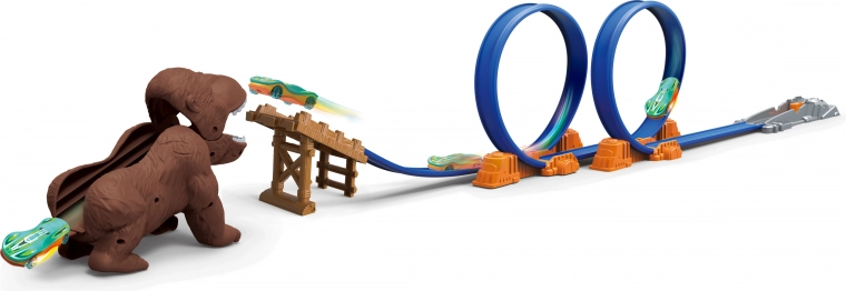 Această pistă de lansare oferă o combinație excelentă de acțiune și distracție. Datorită lungimii de 165 cm oferă suficient spațiu pentru piste de curse interesante și cascadorii. Pe pistă veți găsi: