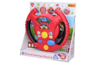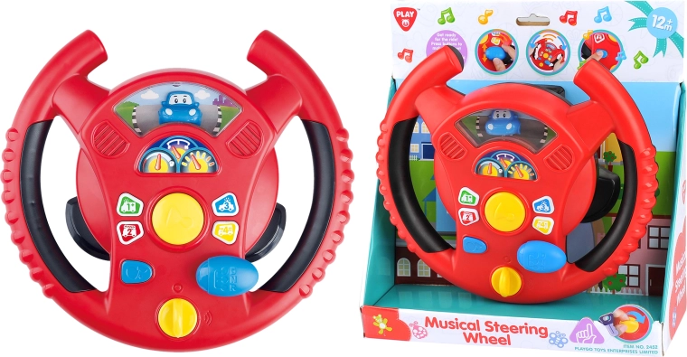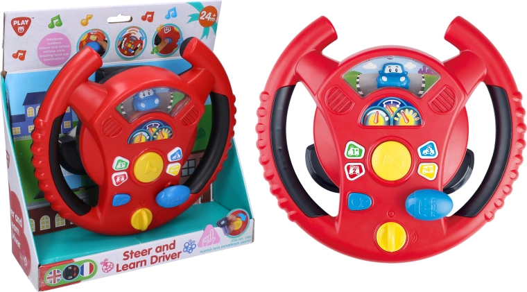 Volanul interactiv Playgo aduce copiilor un joc distractiv de condus într-un mini oraș. Comutatorul rotativ de pe partea inferioară a volanului servește pentru pornire, în centru se află claxonul, în dreapta maneta de schimbare pentru sunetele de mers, iar pe coroana volanului mici butoane cu tonuri și melodii. Copiii se vor bucura de efecte realiste, care amintesc de o mașină adevărată, dezvoltând în același timp coordonarea și imaginația.