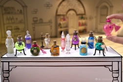 Sfera deschisă se transformă într-o sticlă cu poțiune, pe care o poți expune ușor pe mini masa stilată – ideală pentru colecție.