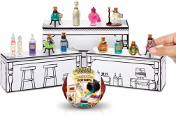 Transformă sfera într-o decorațiune – ambalajul, după deschidere, devine o sticlă stilată cu poțiune, pe care o poți expune pe mini masa inclusă. Colecționează diverse cazane, sticluțe, lingurițe și ingrediente și îmbogățește-ți raftul magic cu noi comori în miniatură.