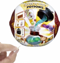 Intră în lumea magiei și a poțiunilor! În fiecare sferă Miniverse Make It Mini Potions găsești piese și accesorii mini, atent realizate, cu care, pas cu pas, îți creezi miniatura unui elixir iconic din filmele HARRY POTTER. După finalizare, întărește amestecul la lumina soarelui sau altă lumină UV și obține o decorațiune permanentă pentru colecția ta.