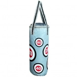 Pe sac sunt marcate ținte circulare cu punctaj, care îi motivează pe copii să lovească precis și le îmbunătățesc coordonarea și concentrarea.