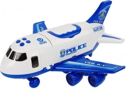Acest avion de transport polițienesc în culori alb-albastru reproduce fidel un aparat real și oferă numeroase posibilități de joacă. Deschiderea laterală și scările glisante permit încărcarea facilă a mașinuțelor, în timp ce rampa din spate asigură descărcarea rapidă la locul intervenției. Mânerul superior le permite copiilor un „zbor” comod prin cameră.