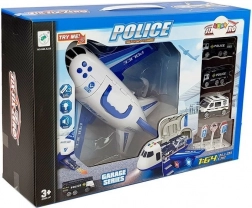 - Avion, 3× mașinuță de poliție, set de indicatoare rutiere