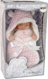 Păpușa este îmbrăcată într-o înfășare roz călduroasă cu o fundiță albă. Are brațe mobile, ceea ce crește interactivitatea și aspectul realist al jocului. Este fabricată din materiale de calitate înaltă, testate, care garantează siguranța și durabilitatea jucăriei.