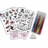 Cu acest set de tatuaje, copiii pot experimenta în siguranță cu diferite designuri și culori. Setul este potrivit pentru copii de la 3 ani și oferă posibilități infinite de creativitate.
