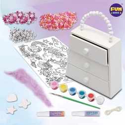 Realizează o cutie de bijuterii originală din lemn cu dimensiuni de 20x15x5,5 cm folosind acest set care include tot ce este necesar. Creativitatea nu cunoaște limite, astfel că o poți decora după propria fantezie. Mărgele colorate și alte ornamente vor adăuga unicitate creației tale.