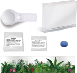 Pachetul conține tot ce este necesar pentru a începe aventura: acvariu, gel nutritiv, lupă, autocolant cu plante și ghid. Recomandat pentru copii de la 8 ani.