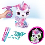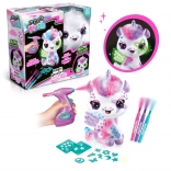 Pornește într-o aventură creativă cu studioul nostru Airbrush - Unicornul magic. Pachetul conține un unicorn de pluș, un instrument de airbrush, trei refill-uri de culori diferite și un set de 60 de șabloane, care îți permit să creezi nenumărate design-uri.