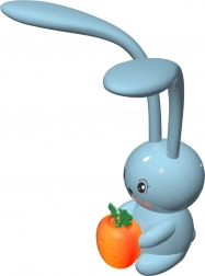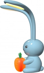 Această lampă în formă de iepuraș este creată pentru camerele copiilor. Culoarea sa albastră și morcovul portocaliu adaugă farmec, iar funcționalitatea sa ca lampă de birou și de noapte oferă un element practic. Urechile lungi ale iepurașului funcționează ca surse de lumină, oferind o iluminare blândă.