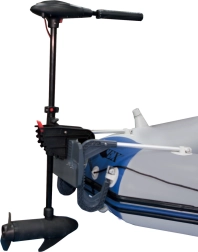 Suportul cu clemă, practic, cu reglaj de adâncime și înclinare, permite o fixare rapidă și sigură pe majoritatea bărcilor pneumatice.