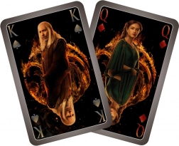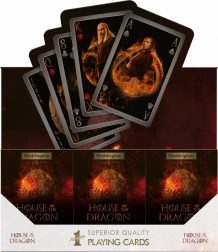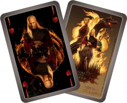 Cufundați-vă în aventuri de jocuri de cărți cu Cărți de joc Waddingtons House of the Dragon, care vă transportă direct în fascinanta lume a strategiilor îndrăznețe și personajelor puternice. Fiecare carte reflectă energia eroilor legendari, dragonilor și locurilor cheie din seria House of the Dragon.