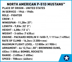 P-51D Mustang North American este unul dintre cele mai faimoase avioane de vânătoare din perioada celui de-al doilea război mondial, acum reprodus fidel sub formă de set de construcție. Acest model cu 152 de piese reconstruiește detaliat avionul la scară 1:48, inspirat din detaliile istorice.