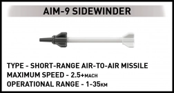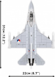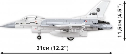 Din 425 de blocuri construibile COBI poți construi acest avion de luptă iconic cu detalii la scara 1:48. Modelul include rachete AIM-9 Sidewinder și AIM-120 AMRAM, care sunt detașabile și ajustabile. Setul include de asemenea o figurină pilot cu mască de oxigen și cască echipată cu imprimeuri ale forțelor aeriene olandeze.