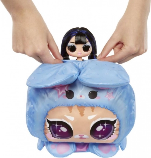 Desfaceți partea din spate a capului pisoiului la scai și descoperiți păpușa fabuloasă Emo Emma Tweens, ascunsă în interior! Desfaceți surprizele adorabile și îmbrăcați pe Emo Emma cu ținute și accesorii moderne, inclusiv o fustă stilată, căști moderne cu urechi de pisică și pantofi colorați. Mânerele păpușii pot fi îndepărtate ușor pentru a o îmbrăca mai ușor.