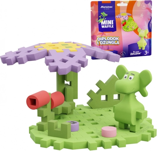 Lăsați-vă purtați într-o aventură spectaculoasă cu setul **Mini Waffle Diplodoc și Junglă**. Acest pachet captivant de 25 de piese vă invită să explorați natura exotică alături de simpaticul personaj Diplodoc, un dragon curajos și curios. Evidențiază inventivitatea pe măsură ce construiești scene din junglă cu copaci, flori și figurina adorabilului Diplodoc.