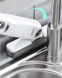 Mini mop Ruhhy este echipat cu un sistem click care asigură că accesoriile rămân ferm atașate. Este ideal pentru curățare precisă chiar și în locuri greu accesibile datorită brațelor flexibile și mișcării laterale.