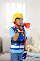 Oferiți copiilor dumneavoastră sentimentul de a fi un adevărat erou cu această cască licențiată după Pompierul Sam. Casca este fabricată din plastic de calitate, echipată cu perne din spumă rezistentă pentru confort și siguranță. În interior veți găsi un microfon reglabil care adaugă realism rolului copilului dumneavoastră.