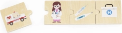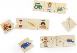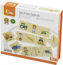 Descoperă puzzle-urile din lemn VIGA, care îi învață pe copii de la 18 luni despre lumea muncii. Setul include 24 de piese, unde copiii asociază 6 profesii cu uneltele și vehiculele corespunzătoare. Jocul dezvoltă motricitatea fină, gândirea logică, atenția și coordonarea vizuală. Fabricat din lemn de fag și colorat cu vopsele netoxice – sigur, durabil și ideal ca cadou.