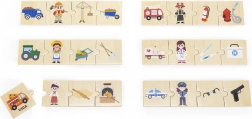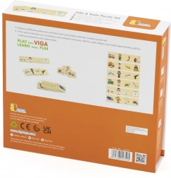 Setul educativ pentru copii VIGA aduce 24 de piese din lemn cu ilustrații frumoase, prin care cei mici descoperă jucăuș 6 profesii – precum pompier, medic, polițist, fermier, constructor sau brutar – și le asociază cu uneltele și vehiculele potrivite. Imaginile colorate susțin învățarea de cuvinte noi și îmbogățesc vocabularul.