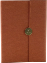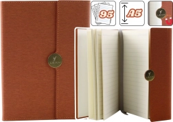 Coperta texturată, cu clapetă și element metalic rotund, are un aspect profesional și rezistă la uzură.