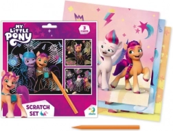 Descoperiți bucuria creației creative cu aceste desene de zgâriat, care invită la dezvăluirea culorilor ascunse. Setul conține trei desene colorate diferite inspirate de My Little Pony și un stilou special pentru zgâriere: