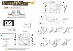 Scoateți piesele din foile metalice; dacă este necesar, folosiți o clește tăietor mic (neinclus). Piesele se îmbină prin încuietori formate dintr-un cârlig (lăbuță) și un orificiu. Îndoiți cârligul cu un clește subțire mic (neinclus) și îmbinați pe rând toate încuietorile până când obțineți o piesă de măiestrie foarte realistă!